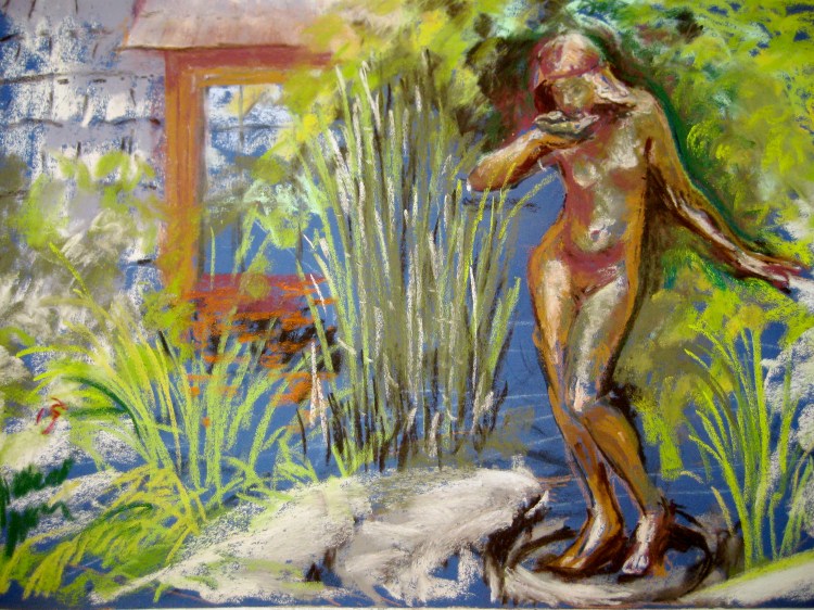 “Lady In The Garden” pastel 18×24 framed