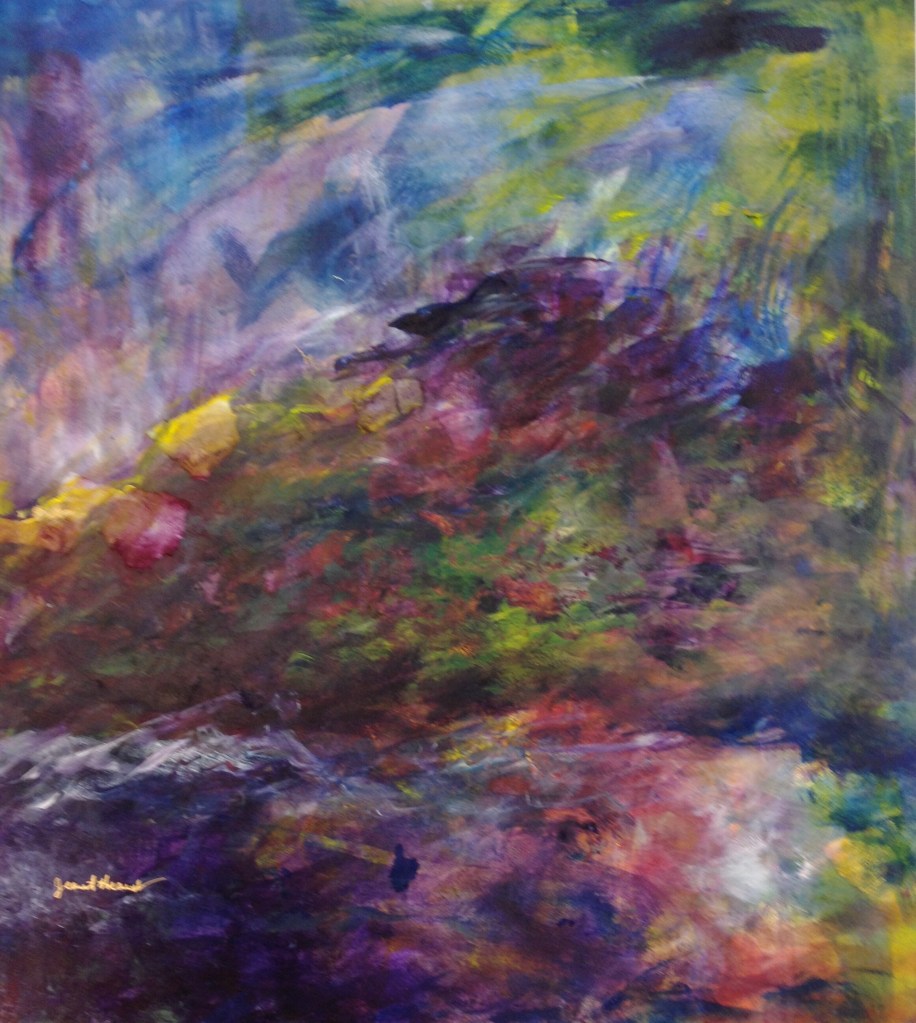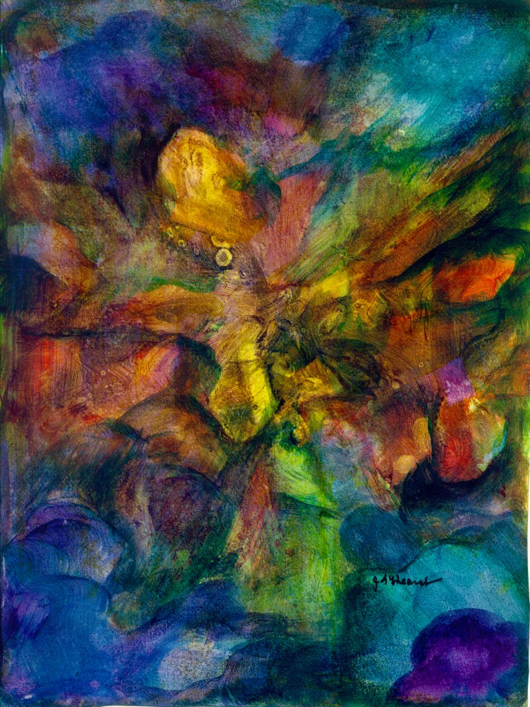 Abstract “Emergence” Acrylic 12×16 “Eruption” acrylic 20×23 “Winds of Change” acrylic on canvas 18×24 “Untitle Abstract” acrylic 12×16 “I’ll Fly Away” mixed media 12×16